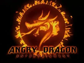 On a black background, there is a red circle with a black dragon (a la the Mortal Kombat logo), outlined in white that is breathing out fire. Then suddenly, the name "ANGRY DRAGON ENTERTAINMENT" in white lettering zooms out mid-fast from the center underneath the dragon. The dragon roars while the name is being positioned under the dragon.
