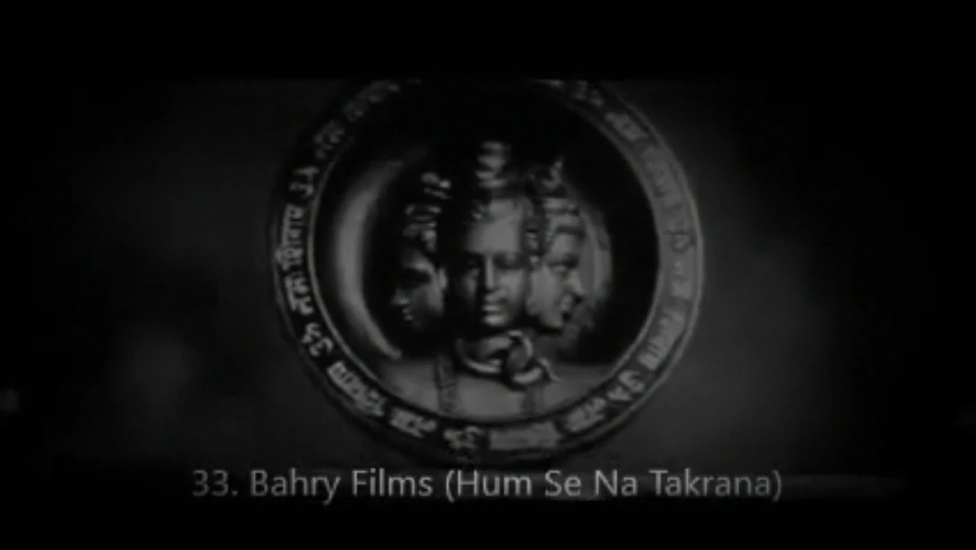 On a red cloudy background, we see a disc with a carved image of the Hindu god Shiva (depicted with three heads), and Hindu writing around the disc. It then zooms out to show it standing on a rectangular block with "ॐ नमः शिवाय" (Om Namah Shivaya, in English) on it. It then cuts to stock footage of lightning. It then freezes as the Hindu announcer speaks. Like most Indian logos, the company name does not appear.