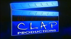 Visuals: Various red digital font numbers are seen counting up against a black background, zooming out. The screen moves to the left, revealing a blue-colored CGI filmstrip facing the right moving to the left. The numbers places itself on to the filmstrip, as well with silver handwritten text “CLAP” placing itself on to the clapboard as well, “PRODUCTIONS” shown underneath the clapboard. The top of the clapboard slowly rises up, and then quickly moves back, causing an explosion of blue smoke to occur as the logo slowly zooms in.