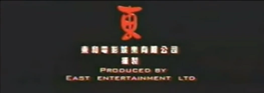 (2002): We see a group of Chinese letters spinning on a black background, textured with moving fire. They get closer to each other and then get far. We then fade out and in into a Chinese symbol "東" raising through fire, while fading out slowly. The same symbol fades in red in front of the fire. The fire fades out, as the Chinese text and "PRODUCED BY EAST ENTERTAINMENT LTD." fade in white below the symbol.