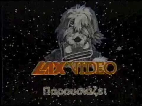 On a zooming space background, light blue warning text in Greek is seen first before it zooms in. A black and white drawing of a sheepdog holding a VHS spins while it zooms in. The orange text "LAX VIDEO" with an white outline emerges from the bottom of the screen and flips into place under the drawing. After a couple of seconds, the Greek text "Παρουσιάζει" appears via a particle effect. After another couple of seconds, the text disappears by the same effect, which is followed by the logo and text sliding up and down respectively.