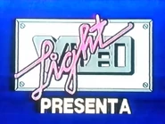 Visuals: On a blue background, the pink cursive text "Light" pixilates. A rectangle with screws and the green text "VIDEO" on it, fades in, "PRESENTA" fades in for seconds as the white outlined circle iris the logo away until it cuts out. Technique: Computer animation.