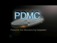 Against a black background, 2 DVDs, one solid and the other transparent, zoom out to the center of the screen, with the solid one coming in from the top left and vice versa. The DVDs fuse together to create one solid DVD. As it rotates, a laser with a lens flare that moves with it traces around its edges, causing it to turn into a flat abstract disc shape in black and silver. "PDMC" in ghostly white appears before flashing into neon blue and turning 3D in the process, as "Panasonic Disc Manufacturing Corporation" fades in below. The lens flare moves in the background from left to right.