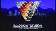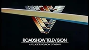 1st logo: On a black background, the text "ROADSHOW TELEVISION" is seen as the Roadshow V is drawn in the same way as the theatrical counterpart at the time, but quicker and the lines are drawn at the same time. The V shines and "VILLAGE ROADSHOW CORPORATION" appears below.