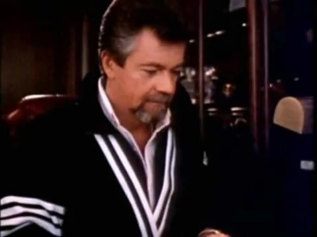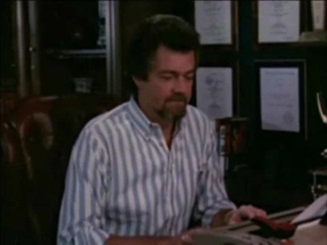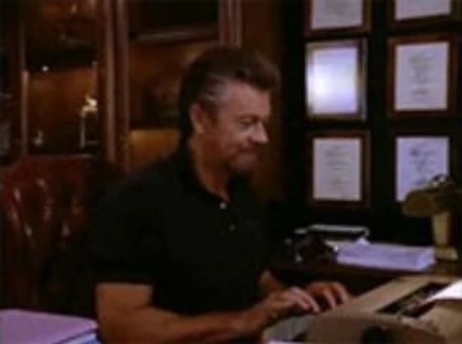 The Stephen J. Cannell Productions logo underwent many changes over the years, but one of the most memorable versions is the one with Stephen J. Cannell himself at his typewriter. In the 1989 version of this logo, Cannell wears a red polo shirt with the collar up.