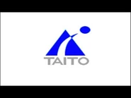 The 3D Taito logo zooms out on a black background. The ball of the logo moves in from the right and places next to the triangle's streak. Then a flash happens, bringing up the flat version of the same logo on a white background.