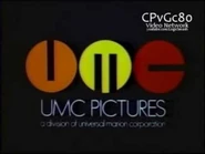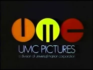 (July 13-October 28, 1970): On a black background, three spinning circles fade in and zoom in towards the screen, changing multiple colors. Once they stop zooming in, they stop spinning one by one, becoming a stylized orange "U", light-golden "M", and red "C", while the words "UMC PICTURES" zoom in below. The byline "a division of universal marion corporation" is wiped in below.