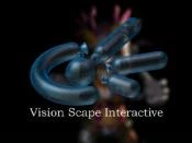 (2001-2005): On a black background, there is a freaky clown standing in a spotlight, thinking about something. He gets an idea and gets a green balloon, which he blows up and makes a balloon dog. He drops the dog, which for some reason becomes alive, and gets a red balloon which he also blows up and he makes a balloon rabbit. He drops the rabbit, which also becomes alive, and gets a blue balloon. He then makes it into a abstract eye symbol, with 3 large eyelashes. We zoom into it as "Vision Scape Interactive" appears with blur effects below as the clown is defocused by camera.