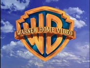 Against a backdrop of clouds, a clear WB shield with a wordless banner slowly fades into view. Then the words "WARNER HOME VIDEO" are wiped onto the banner as the colors slowly appear on the shield.